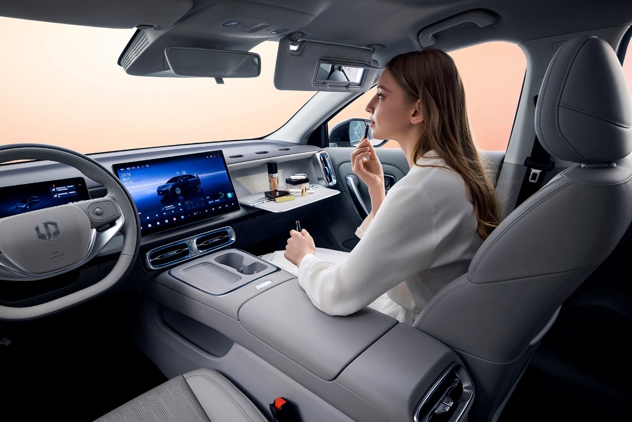 零跑B01沿用了B系列首創(chuàng)的"百變副駕空間"設(shè)計(jì)——通過(guò)6個(gè)魔術(shù)拓展孔與1個(gè)矩形凹槽,可自由組合折疊桌板、手機(jī)支架、儲(chǔ)物盒、水杯架、掛飾等配件,適配辦公、娛樂(lè)、收納等多場(chǎng)景需求。