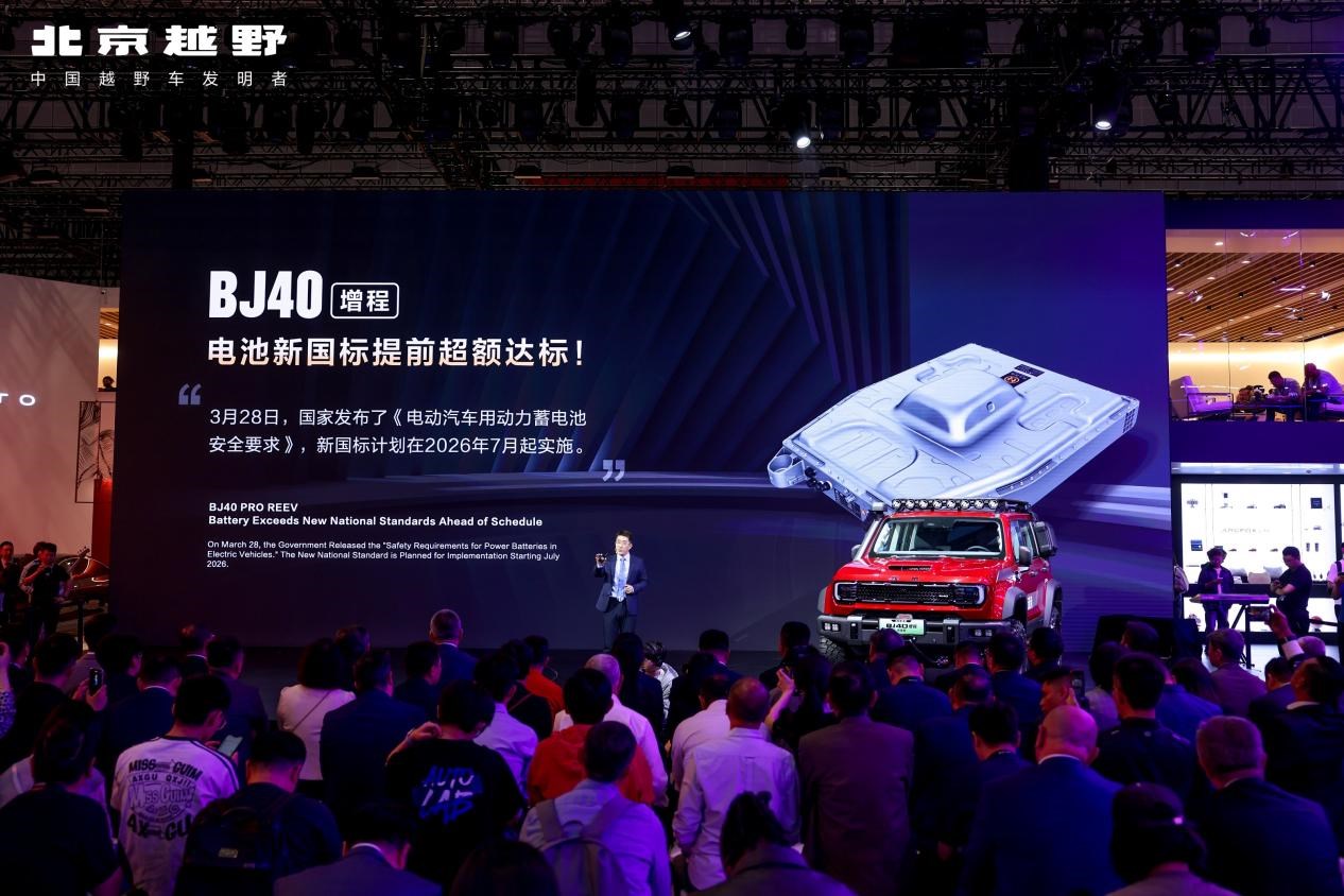 對于北京越野來說,在安全面前只有永不懈怠的自我超越,沒有達標線,只有不斷突破的更高標準。在BJ40增程車型研發(fā)期間,也就是2024年8月20日,BJ40增程的電池就已經(jīng)提前達成《電動汽車用動力蓄電池安全要求》新國標,并且是提前超額達標。