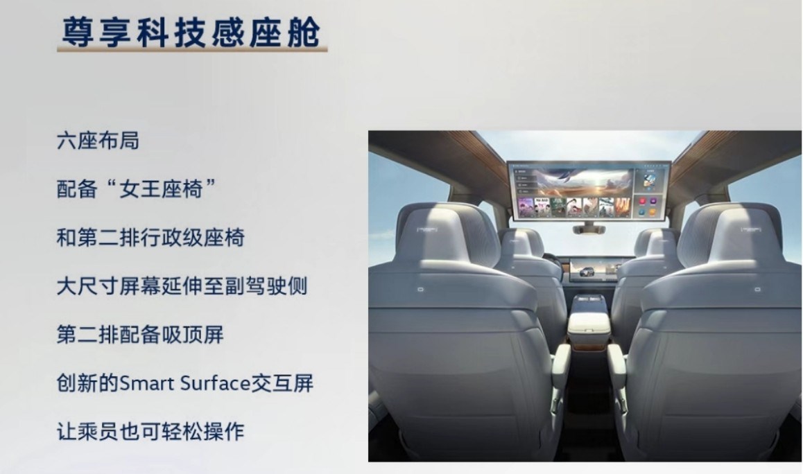 內(nèi)飾會配備酷似理想系列車型的中控一體式大屏,提供6個座椅、女王副駕、后排吸頂屏等主流國產(chǎn)新勢力車型搭載的功能配置??傊掀蟊娺@臺大型SUV亮點挺多,后期價格合理的話真有可能大賣。