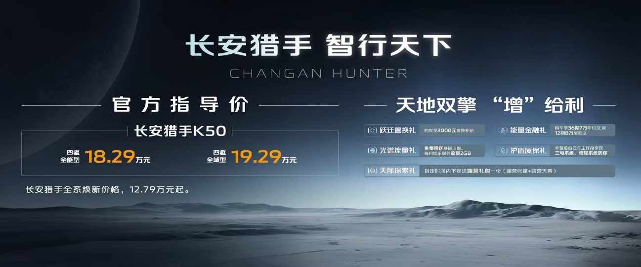 長安獵手K50四驅(qū)全域型,讓遠(yuǎn)方?jīng)]有邊界,官方指導(dǎo)價(jià)19.29萬元;